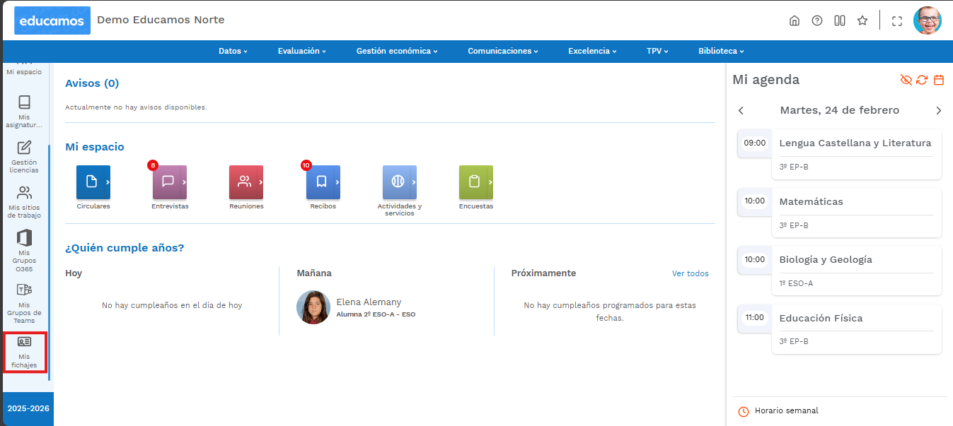 Esta información se actualiza diariamente, por lo que no es necesario modificar en School Tracker estos datos cada vez que se produzca un cambio –en Educamos.